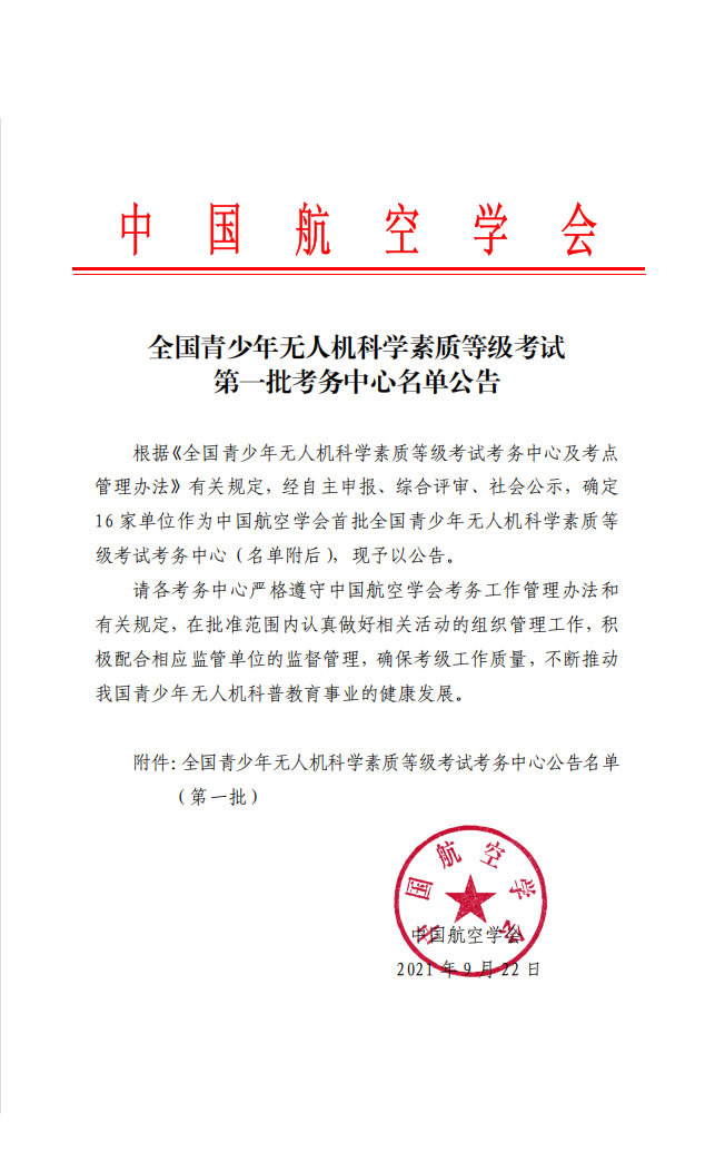 瀚空航空成员单位获首批全国青少年无人机科学素养等级考试考务中心资质